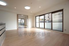 大きな掃き出し窓のあるリビングは、陽光あふれる明るい空間です。ゆったりと寛げる憩いの場となりそうです。