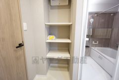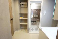 洗面室には可動棚タイプの収納が設けられています^^衣類やタオルの収納スペースを確保。雑然とした洗面室がすっきり片付けやすくなります^^