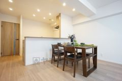 キッチン上部にはダウンライトが設けられています^^明るいダイニングです^^