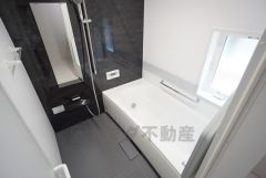 1日の疲れを癒すくつろぎのバスルーム。足を伸ばしてもゆったりと入れるサイズです。お子様と一緒にお風呂に入っても狭くないですね^^