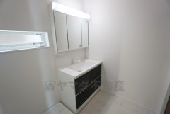 三面鏡裏収納付き洗面化粧台です^^ 歯磨きセットやスキンケア用品などの収納に便利ですね。