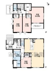 オールフローリング4LDK。リビング収納、洗面室収納あり^^主寝室は約8.62帖。2面バルコニーで陽当たり・風通し良好^^