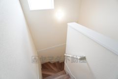 ご年配の方でも安心できる、手すり付き階段です^^段差も低めで設定されてますので安全性にも優れてますね^^