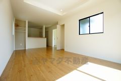 同仕様写真。対面式キッチンを中心としたリビングダイニングで家族の会話が弾みそうです。