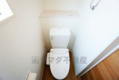 同仕様写真。温水洗浄機付トイレです。節水機能もあるので、安心して使えますね。もちろん、1階2階の2ヶ所にトイレがあるので、忙しい朝にもゆとりができますね。