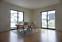 同仕様写真。対面式キッチンを中心としたリビングダイニングで家族の会話が弾みそうです。