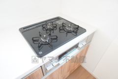 3種類の料理が同時に調理できる、3口ガスコンロ。忙しい夕食の支度時間が短縮できて効率よくお料理が楽しめます。