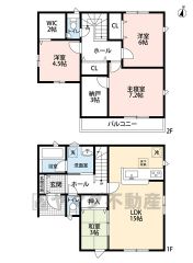 4LDKとS。1階はLDKと和室合わせて18帖の広々空間^^2階はWICなど全居室収納付き。約3帖の納戸付き^^南面バルコニーで陽当たり良好^^