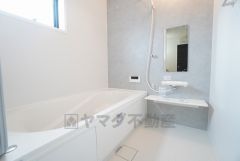 1日の疲れを癒すくつろぎのバスルーム。足を伸ばしてもゆったりと入れるサイズです。お子様と一緒にお風呂に入っても狭くないですね^^