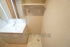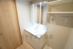 三面鏡裏収納付き洗面化粧台です^^ 歯磨きセットやスキンケア用品などの収納に便利ですね。