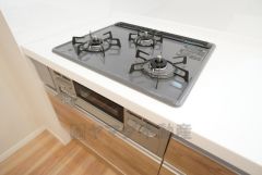 3種類の料理が同時に調理できる、3口ガスコンロ。忙しい夕食の支度時間が短縮できて効率よくお料理が楽しめます。