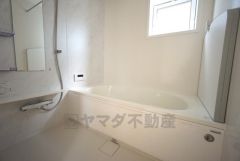 1日の疲れを癒すくつろぎのバスルーム。足を伸ばしてもゆったりと入れるサイズです。お子様と一緒にお風呂に入っても狭くないですね^^