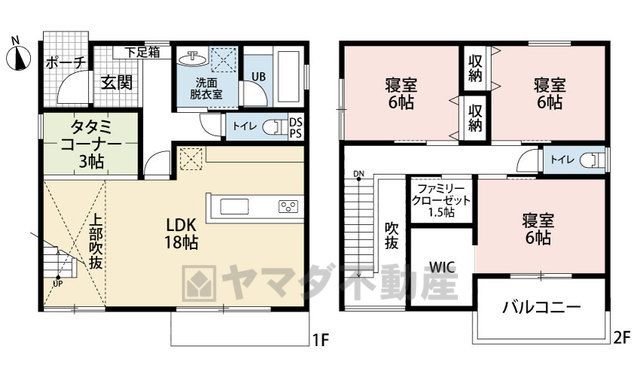 LDK18畳、和3畳、洋6畳 |