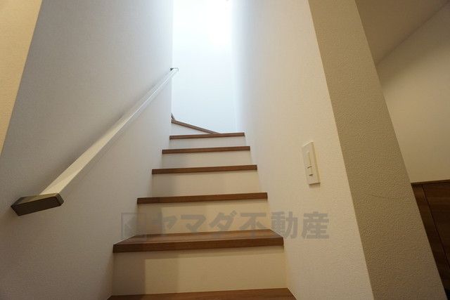 手摺り付きの階段なので小さいお子様や、ご年配の方が昇り降りする際も安心ですね^^