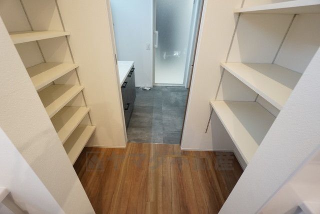 ■キッチンと洗面脱衣室から行き来できるパントリーあり♪家事動線が考えられた間取り◎