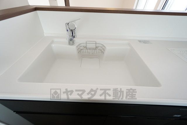 色も形もキレイなシンクは、広さも確保しているので、大きめの鍋も簡単に洗えます。