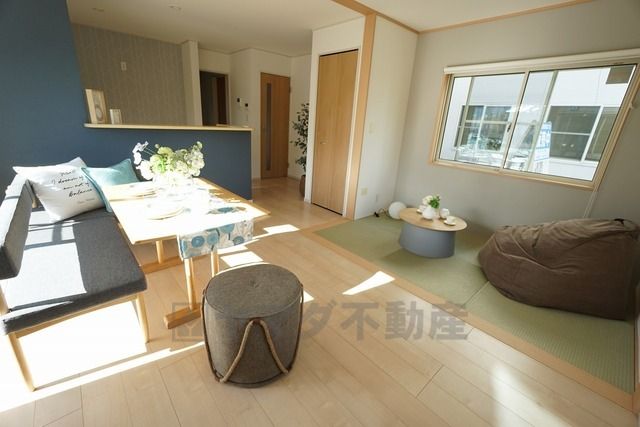 LDKに隣接するタタミコーナー。お昼寝や洗濯物を畳んだり、アイロンをかける作業スペースとしても活躍します。
