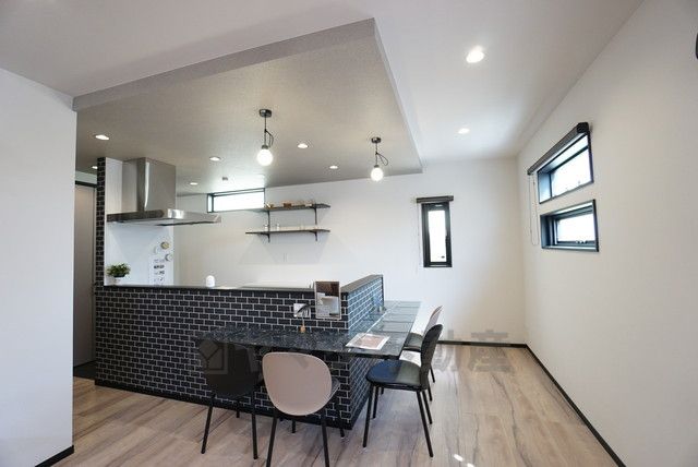 お洒落なカフェ風のダイニングキッチン。ゆったりとおうち時間を過ごすことができますね。