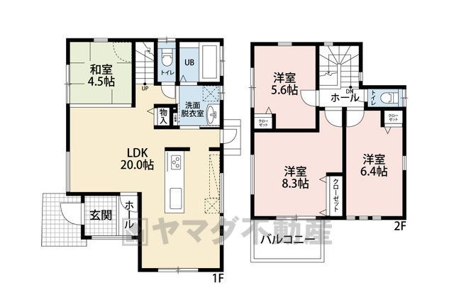 LDK20畳、和4.5畳、洋5.6畳、洋6.5畳、洋8.3畳 |