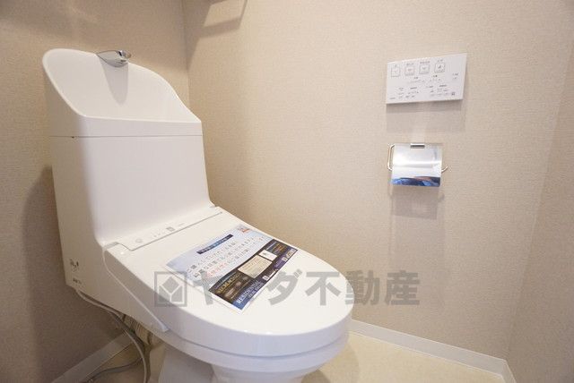 ウォシュレット、暖房便座、節電・節水機能など、使い勝手のよい高機能トイレです。 上部には収納棚が付いています^^