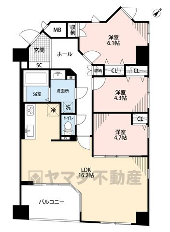 LDK16.2畳、洋4.3畳、洋4.7畳、洋6.1畳 |