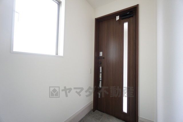 玄関扉にスリットのある明るい玄関です^^玄関向かいにシューズボックス付き。