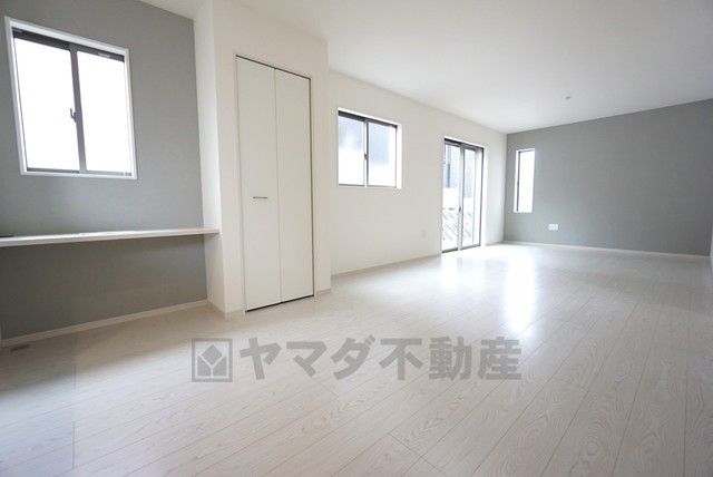 大きな掃き出し窓のあるリビングは、陽光あふれる明るい空間です。ゆったりと寛げる憩いの場となりそうです。
