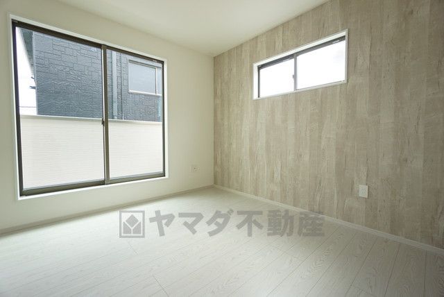 6帖。主寝室としてお使いいただけそうなこちらのお部屋は、日当たりが良く、爽やかな風を感じて起きる朝は、快適生活の始まりに。アクセントクロスがお洒落です^^