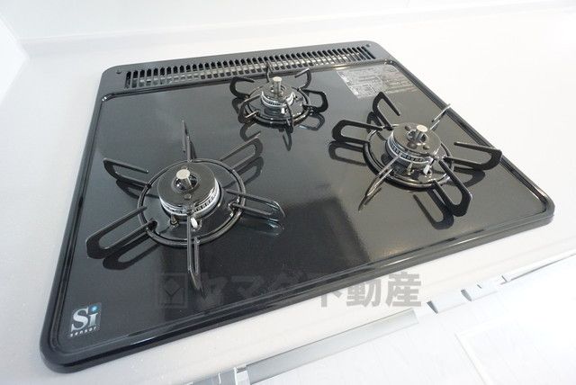 3種類の料理が同時に調理できる、3口ガスコンロ。忙しい夕食の支度時間が短縮できて効率よくお料理が楽しめます。