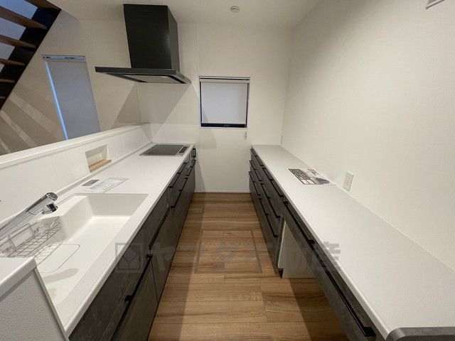 対面式キッチンなのでリビングにいるご家族とコミュニケーションを取りながら洗い物や、お料理が楽しめそうですね^^キッチン後方にはカップボード付きです^^