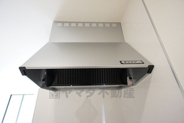 コンロ上には換気扇完備^^すぐ横に小窓が設けられているので、換気扇と合わせてWで換気できます^^