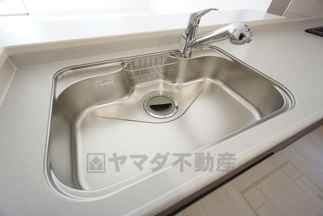 大きなお鍋も楽々洗える幅の広いシンクです^^ステンレスシンクなので簡単にお掃除できますよ。洗剤やスポンジもすっきりできる収納付き。