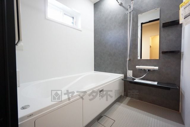 1日の疲れを癒すくつろぎのバスルーム。足を伸ばしてもゆったりと入れるサイズです。お子様と一緒にお風呂に入っても狭くないですね^^