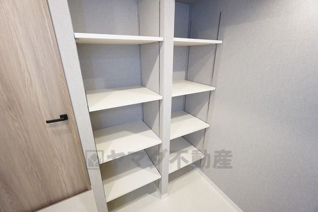 廊下には大きめの収納が付いています。可動棚付きなので収納したいものによって高さが変えられるので、便利ですね^^