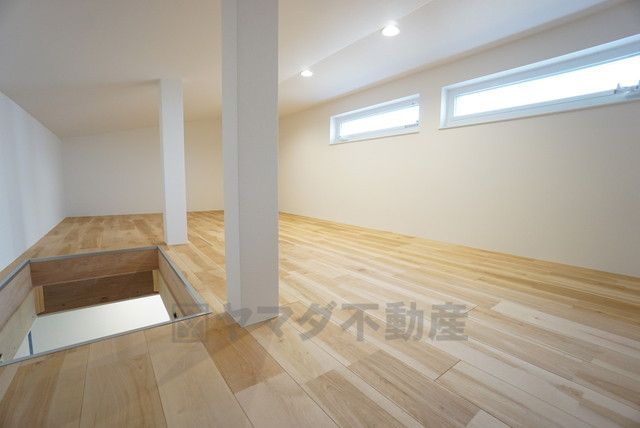 8.36帖の広々した小屋裏収納付きです^^季節の衣類やアウトドアグッズなどの趣味の道具もスッキリ整頓できそうです。窓が付いており換気に便利です^^