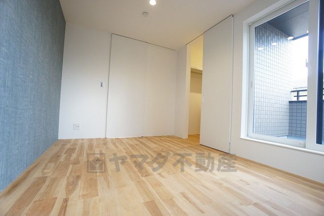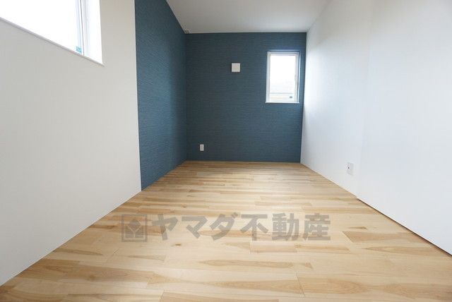 バルコニーに面した6帖の洋室です。デザインクロスがアクセントになった落ち着いた雰囲気のお部屋です。