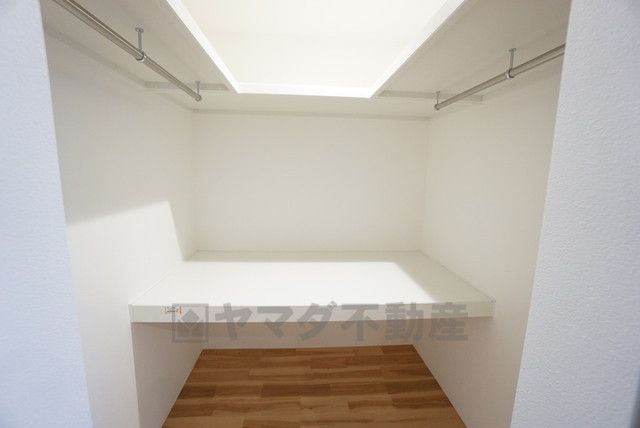 6帖の洋室にはウォークインクローゼット付き。ハンガーパイプ下にボックスを置いて、枕棚を活用して、たっぷりと収納できそうです^^