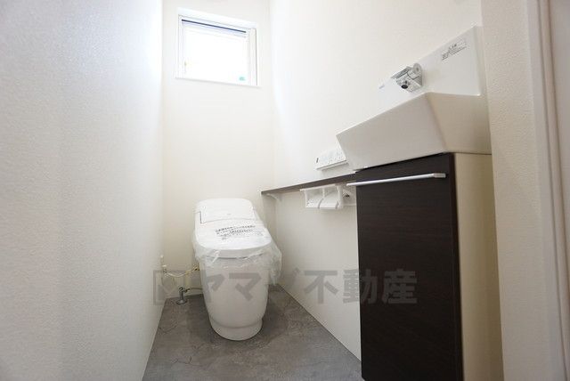 1階2階の2ヶ所にトイレがありますので、忙しい朝にも家族に気を使わず、ゆとりが生まれますね^^ 小窓付きで換気する時に便利です^^手洗いスペースも付いています^^