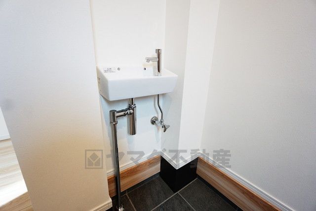 玄関に手洗器が設置されています^^外から帰って最初に手洗いができる環境です^^お子様と一緒に習慣にできそうですね^^
