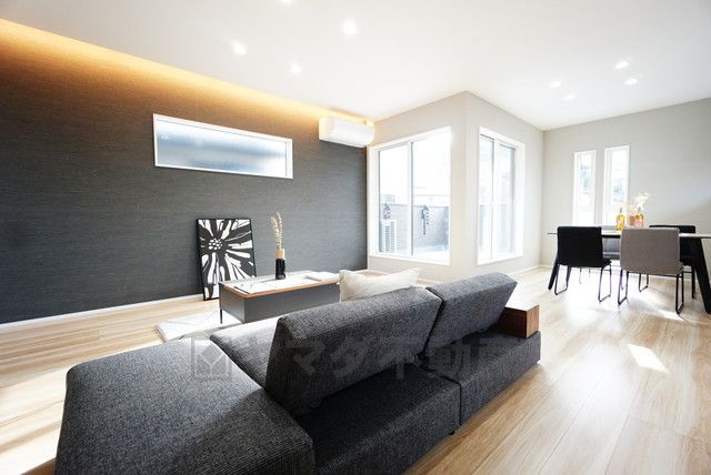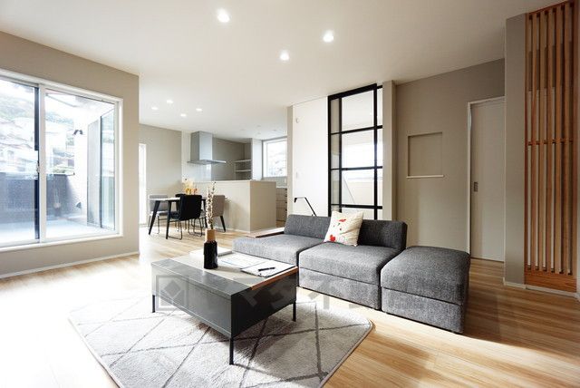 大きな掃き出し窓のあるリビングは、陽光あふれる明るい空間です。ゆったりと寛げる憩いの場となりそうです。