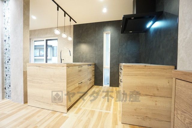 ■シンクとコンロが前後に設けられた使いやすいキッチン^^アクセントクロスでスタイリッシュ♪カップボードは標準装備◎たっぷり収納出来そうです♪