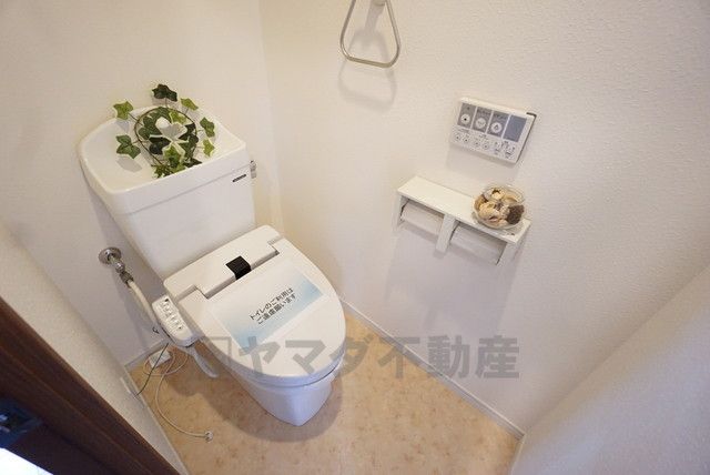 ウォシュレット、暖房便座、節電・節水機能など、使い勝手のよい高機能トイレです。 上部には収納棚が付いています^^