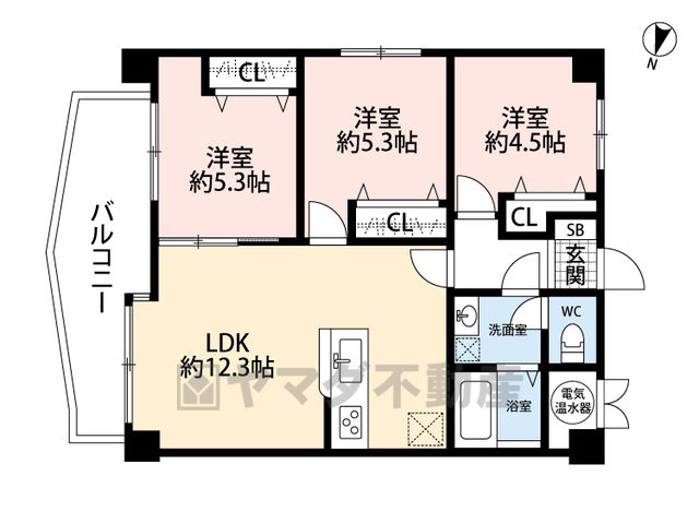 LDK12.3畳、洋4.5畳、洋5.3畳、洋5.3畳 |