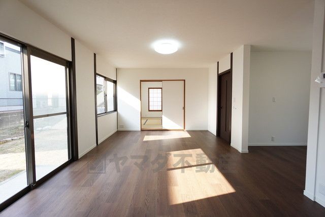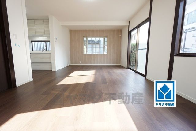大きな掃き出し窓のあるリビングは、陽光あふれる明るい空間です。ゆったりと寛げる憩いの場となりそうです。