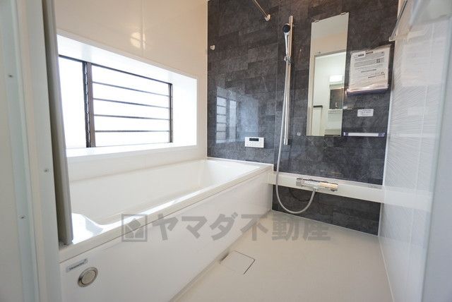 1日の疲れを癒すくつろぎのバスルーム。足を伸ばしてもゆったりと入れるサイズです。お子様と一緒にお風呂に入っても狭くないですね^^
