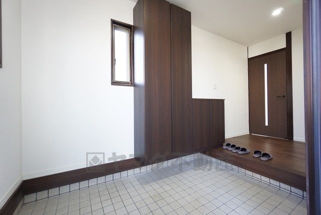 土間部分が広々とした玄関^^シューズボックス付きなので、家族全員の靴がきれいに整頓できます。採光も考えられた明るい玄関です^^ステキな玄関で帰ってくるのが楽しみになりそうですね^^