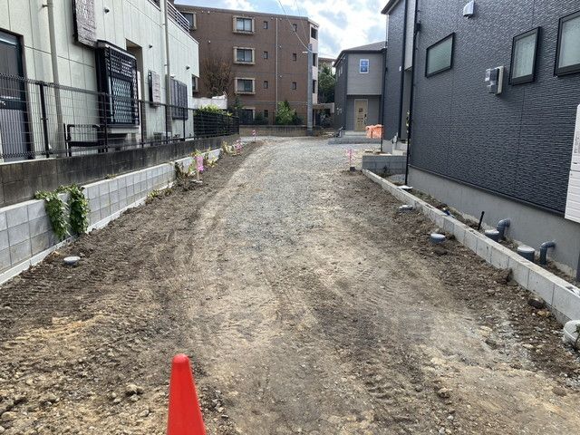 全3区画の新築戸建です^^手前から1号棟、2号棟、3号棟。