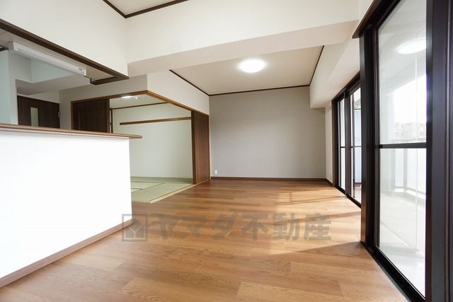 大きな掃き出し窓のあるリビングは、陽光あふれる明るい空間です。ゆったりと寛げる憩いの場となりそうです。