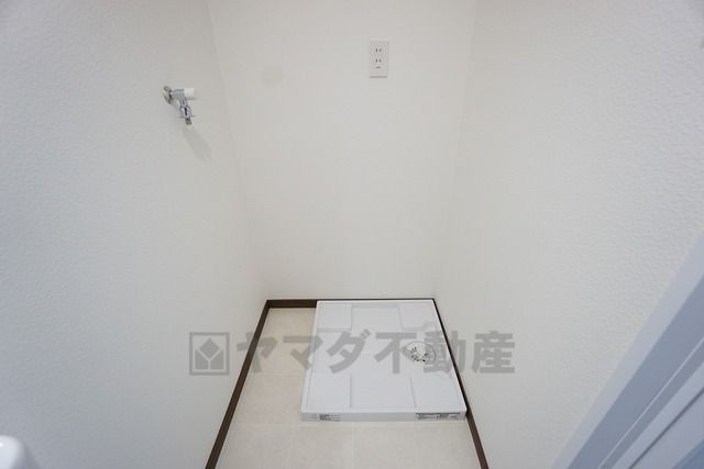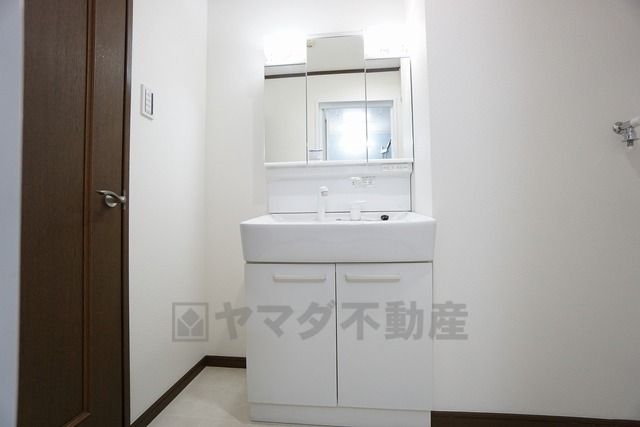 洗面台、洗濯機置き場、バスルームが連なっている、生活導線の考えられた作りになっています。