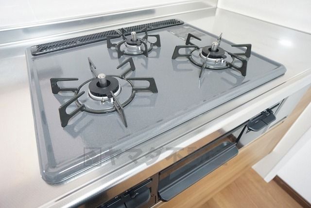 3種類の料理が同時に調理できる、3口ガスコンロ。忙しい夕食の支度時間が短縮できて効率よくお料理が楽しめます。